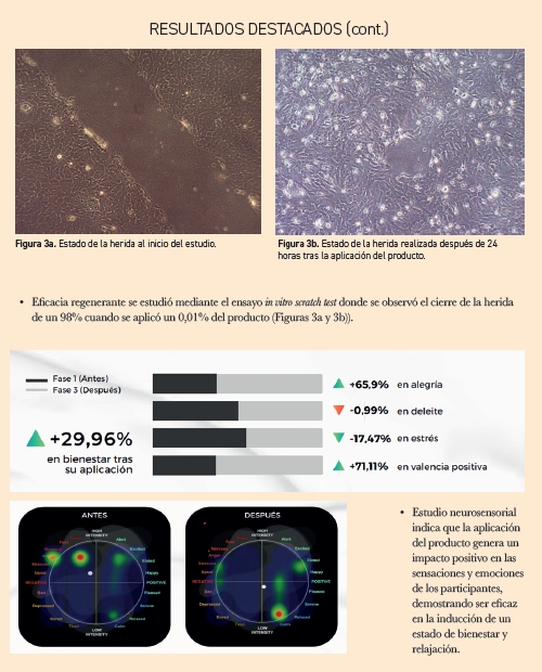 Los estudios de eficacia de los activos se realizaron in vivo bajo supervisión dermatológica e in vitro con cultivos celulares.