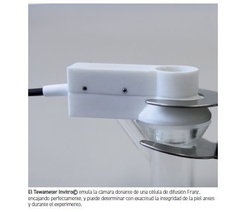Desde hace muchos años, las células de difusión Franz se utilizan para realizar ensayos in vitro de la difusión de sustancias químicas en la piel humana o animal extirpada y a través de ella. La directriz 428 de la OCDE describe detalladamente este ensayo. Los resultados de este tipo de pruebas son especialmente útiles para examinar la liberación de sustancias químicas a partir de diferentes formulaciones y para evaluar la absorción percutánea. La muestra de piel separa las dos cámaras de la célula de difusión, la cámara donante superior y la cámara receptora inferior. La cámara receptora está llena de fluido que suele calentarse a una temperatura aproximada de 32 °C, similar a la temperatura de la piel. El producto químico investigado se aplica sobre la piel durante un tiempo determinado en condiciones específicas, antes de ser eliminado mediante un método de limpieza definido. A lo largo del experimento, se toman muestras del fluido de la cámara receptora en distintos momentos y se analizan en busca del producto de ensayo o los metabolitos. Para obtener resultados fiables, es esencial que la piel que se utilice para esta prueba no esté dañada y presente una integridad total. La medición del TEWL con sondas especialmente adaptadas sirve para evaluar la integridad cutánea de la muestra y también puede utilizarse para medir las influencias nocivas del producto químico sobre la piel. La sonda Invitro Tewameter® ha sido especialmente desarrollada y está perfectamente adaptada para la medición de células de Franz, emulando por completo la cámara donante. De este modo, puede colocarse directamente sobre la muestra de piel, de modo que la pérdida de agua calculada de la muestra de piel corresponde a la pérdida de agua transepidérmica medida normalmente en la superficie de la piel in vivo en g/h/m². La cámara abierta de la sonda ofrece la posibilidad de aplicar la sustancia sobre la muestra de piel a través del cilindro de medición y, al mismo tiempo, puede medir la pérdida de agua a través de la piel. Para los ensayos que requieren mayores cantidades de la sustancia química aplicada sobre la superficie de la piel, también es posible añadir una pieza central que se ajusta exactamente a la sonda y a la cámara receptora de la célula Franz sin necesidad de más adaptadores de fijación.