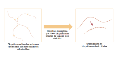 Figura 1. Desarrollo de un biopolímero tensor helicoidal.