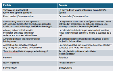 Gracias a su potente efecto tensor y al aumento de la adhesión que le confiere la exclusiva tecnología FHB®, el Castanea sativa (Chestnut) Seed Extract se establece como un tensor polivalente para el rostro y el cuerpo, actuando como un verdadero potenciador de la belleza y un perfeccionador del maquillaje.