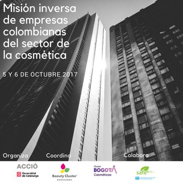 Acció, en colaboración con el Clúster de Cosméticos de la Cámara de comercio de Bogotá y el Beauty Cluster Barcelona, organiza una misión inversa gracias a la que 9 empresas colombianas del sector de la cosmética viajarán a Barcelona del 5 al 6 de octubre. El objetivo de esta reunión es poder explorar oportunidades de colaboración. Las empresas colombianas participantes en la misión son: