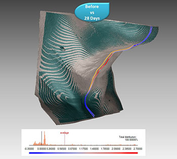 Bionos Biotech ha desarrollado un nuevo estudio clínico para validar la eficacia antipapada de un tratamiento, permite llevar a cabo un análisis visual y cuantificable de forma muy precisa, analizando la profundidad (desviación) de la papada a lo largo de toda la sección del cuello, comparando el antes y el después de un tratamiento.