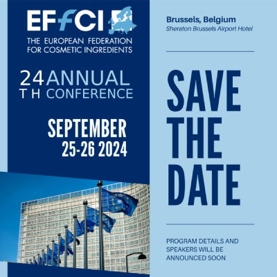 La Federación Europea de Ingredientes Cosméticos (EFfCI) organizará su evento anual, las 24ª Jornadas Anuales, los días 25 y 26 de septiembre en Bruselas, Bélgica. Este evento reunirá a las empresas miembros y las seis asociaciones nacionales europeas para discutir los asuntos más relevantes del sector de las materias primas e ingredientes cosméticos a nivel regulatorio global. Los asistentes, especialmente los socios de la Asociación Española de Ingredientes Cosméticos (AEIC), te