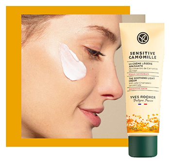 Yves Rocher lleva aunando esfuerzos para calmar la piel sensible desde el año 1979, cuando comenzó a cultivar la camomila silvestre bio en La Gacilly. Pero es ahora, después de varios años de investigación botánica y agrónoma, cuando se ha seleccionado una variedad de camomila silvestre bio particularmente rica en ingredientes activos calmantes y que capaz de liberar las endorfinas de la piel. En torno a estos avances ha nacido su nueva línea Sensitive Camomile.