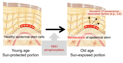 Shiseido ha revelado a través de 5 años de investigación en colaboración con el Centro de Investigación de Biología Cutánea (CBRC)1 del Hospital General de Massachusetts que la fosforilación2 de la proteína de unión al ARN3 YBX14, que suprime la senescencia de las células madre epidérmicas, reduce su función, induciendo así la senescencia celular. También se ha demostrado que la inhibición de la fosforilación de YBX1 aumenta el número de células madre epidérmicas, lo que sugiere que para mantener la cantidad de células madre epidérmicas también es importante su "calidad". Aplicando estos resultados, pretenden abordar diversos problemas relacionados con el envejecimiento de la piel mediante la supresión de la senescencia de las células madre epidérmicas.