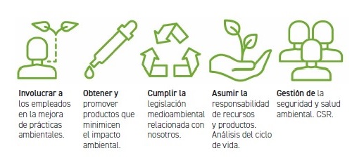 Tal como comentaba al inicio de este artículo, la involucración de todos los empleados en la mejora de las prácticas ambientales es una necesidad. A ello debemos añadir obtener y promover productos que minimicen el impacto ambiental de nuestros procesos de fabricación y distribución; cumplir o superar toda la legislación medioambiental relacionada con nosotros fomentando sugerencias de mejora; asumir la responsabilidad de los recursos que usamos y los productos que creamos a través de análisis del ciclo de vida; y adoptar nuestros valores fundamentales para la gestión de la seguridad y la salud ambiental.