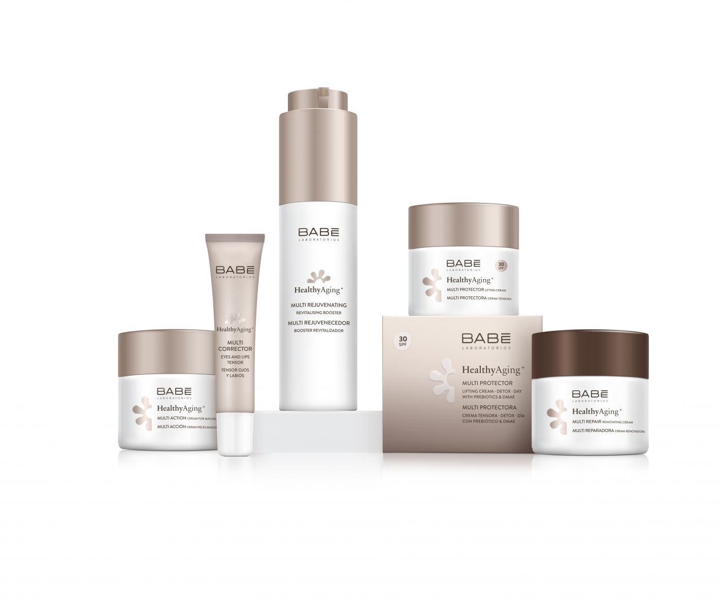 En esta línea, Laboratorios Babé ha desarrollado Healthy aging, una línea cosmética, de venta en farmacias y basada en la ciencia, formada por 5 productos que buscan cubrir las necesidades fundamentales de cualquier persona a cualquier edad. Así, su objetivo es proteger, transformar y optimizar el aspecto de la piel aportando una apariencia joven y saludable, independientemente de la edad cronológica de quien la utiliza.