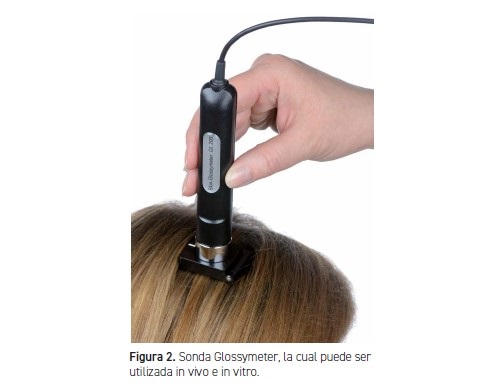 DISPOSITIVOS TÍPICAMENTE EMPLEADOS en la piel de forma fácil y rápida, como son el Colorimeter y el Glossymeter, también son adecuados para fundamentar afirmaciones capilares en auge como pueden ser brillo, luminosidad, lustre, intensidad de color y duración de color para el cabello (figura 2).