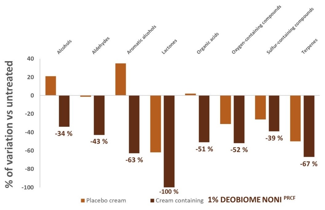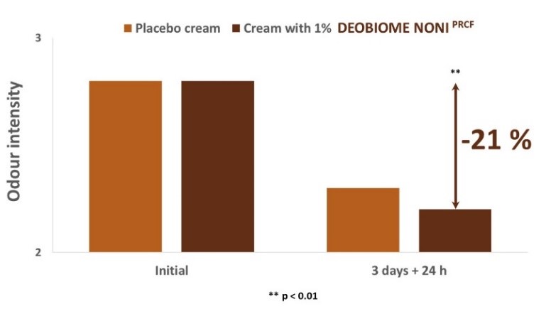 HISTÓRICAMENTE, la modulación del olor corporal ha supuesto una preocupación para el ser humano y el estudio de la microbiota involucrada representa un enfoque desde el que poder afrontar naturalmente esta cuestión. El nuevo activo Deobiome Noni (INCI: Morinda Citrifolia Callus Culture Lysate) es un ingrediente activo procedente de células madre de la planta Morinda citrifolia que introduce el concepto de desodorante biológico. Al combinar una innovadora tecnología prebiótica y los últimos avances en tecnología de células madre vegetales en el tratamiento de la microbiota de la piel, se ha demostrado cómo modular el mal olor corporal respetando la microbiota de la piel y su ecosistema. El mecanismo de acción del activo se ha evaluado mediante diversos ensayos in vitro e in vivo, demostrando la reducción efectiva del olor corporal a la vez que permite la transpiración natural de la axila.