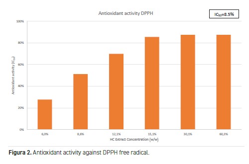 La actividad antioxidante del extracto HC en comparación con otros antioxidantes conocidos se recoge en la figura 3.