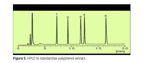 Los compuestos biológicamente activos más significativos fueron estandarizados por HPLC individualmente para cada producto. Por lo tanto, la calidad de todo el proceso está garantizada (figura 5).