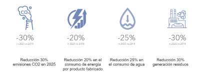 En los últimos 10 años han logrado reducir en un 73% las emisiones de CO2 por unidad producida. Para 2025 tienen el objetivo de reducir adicionalmente en un 30% las emisiones restantes de CO2 y alcanzar la neutralidad climática en 2030.