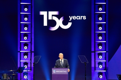 Brenntag, referente en el mercado de la distribución de productos químicos e ingredientes, ha celebrado recientemente su 150 aniversario en Essen (Alemania), donde tiene su sede esta empresa del DAX40. A la ceremonia asistieron numerosos invitados de la industria química, clientes, proveedores y otros socios comerciales, así como invitados de honor como el Canciller alemán Olaf Scholz.