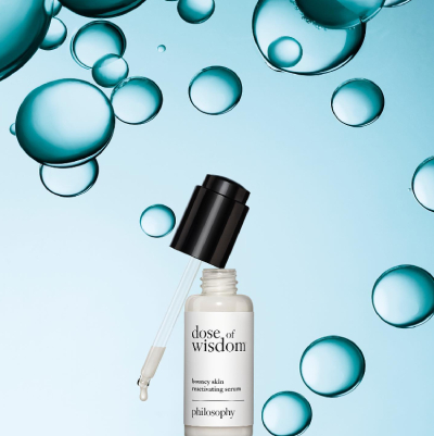 Philosophy dose of wisdom™ bouncy skin reactivating serum es el primer producto bajo la nueva franquicia dose of wisdom™. Este sérum facial de uso diario actúa como un estímulo para la piel, reactivando y restaurando su vitalidad mediante una hidratación en profundidad y el apoyo del colágeno. Los activos esenciales -vitamina c y ácido hialurónico injertados en moléculas, además del potenciador de vitalidad patentado por Philosophy- se administran de forma experta para optimizar sus beneficios de forma suave para todo tipo de pieles, incluidas las sensibles.