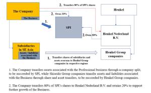 Los activos relacionados con el negocio que se mantienen en Japón se transferirán a la filial de la Shiseido mediante una escisión corporativa de tipo absorción, seguida de una transferencia del 80% de sus acciones a una filial de Henkel. Las acciones y los activos relacionados de las filiales que operan el Negocio en el extranjero se transferirán a empresas del Grupo Henkel.