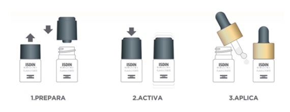 Flavo-C Forte se presenta en un envase extemporáneo donde la Vitamina C se encuentra en el tapón superior, aislada del resto de la fórmula para mantener su máxima eficacia hasta el momento de su uso. Una vez mezclada la vitamina C en polvo con una solución rica en activos antioxidantes, hidratantes y anti-polución, el producto ya está activado y debe utilizarse durante los próximos 10 días para mantener su máxima potencia.