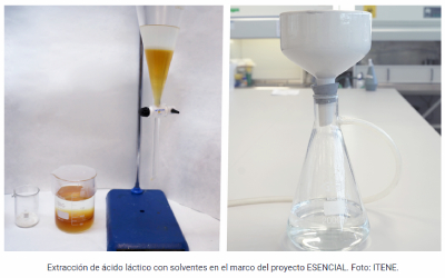 Así, en el marco del proyecto ESENCIAL, se han establecido procesos avanzados para la valorización de subproductos agroalimentarios con el propósito de generar ácidos orgánicos de gran calidad, incluidos el ácido láctico y el ácido succínico. Estos ácidos no solo encuentran aplicación en el sector del envase y embalaje, sino que también tienen relevancia en la industria cosmética. Específicamente, el ácido láctico y el ácido succínico sirven como materias primas para la producción de ácido poliláctico (PLA) y poli(butilen-succinato) (PBS), respectivamente.