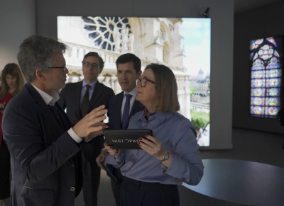 Los visitantes realizarán el recorrido de la muestra equipados con HistoPad™, una tableta portátil con pantalla táctil con la que se escanean 21 “puertas del tiempo”, que permiten una inmersión de realidad aumentada en 360° por 850 años de historia. Desde la colocación de la primera piedra en 1.163, hasta la restauración en curso de la catedral, pasando por la fastuosa boda del rey Enrique IV, la coronación de Napoleón Bonaparte, o la construcción de la emblemática aguja de Notre-Dame, obra de Viollet-le-Duc en el siglo XIX, trágicamente destruida por el incendio de 2019.