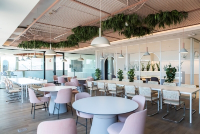Por último, GO WELL engloba ámbitos relacionados con la sostenibilidad y con el cuidado de las personas. Para ello, la sede de L’Oréal cuenta con servicios médicos, de fisioterapia y health coach, así como distintas áreas dedicadas a la salud y el bienestar, entre las que se encuentran un nuevo gimnasio, una sala de lactancia, e incluso un beauty corner que funciona como un centro de belleza con servicios de peluquería para empleados, así como una boutique con oferta de productos tanto para empleados como invitados que pasen por la sede. Además, los distintos servicios de restauración de las nuevas oficinas también ofrecerán opciones de alimentación saludable, y mantendrán la iniciativa “llévate la cena” para contribuir a una mejor gestión de los residuos. Aunando todos estos conceptos de salud, sostenibilidad y bienestar, se construyeron las grandes terrazas del edificio, diseñadas no sólo para tomar el aire y desconectar, sino que también podrán funcionar como espacios puntuales de trabajo o reunión, así como eventos.