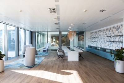 El primero de ellos, GO FLEX, se enfoca como un modelo basado en la cohesión, la colaboración, la innovación y la modernidad en la forma de trabajar, es decir, el edificio se ha concebido desde sus inicios para responder a un modelo híbrido de trabajo en el que los empleados no tienen un lugar fijo, sino que tienen la flexibilidad de decidir con fluidez tantas veces como deseen a lo largo del día cuál es el espacio que mejor responde al desempeño de sus labores. La compañía ha redefinido el lugar de trabajo, creando espacios de colaboración diáfanos donde predomina la cultura de los llamados free-seatings, lo que significa la desaparición del antiguo concepto de sitio asignado, y reduciendo aspectos de almacenamiento con la eliminación de las cajoneras, promoviendo así la rotación de sitios y la colaboración de empleados de distintas áreas y departamentos. Así pues, pueden decidir trabajar desde zonas abiertas de colaboración informal como el workcafé, equipado versátilmente como área de café y lugar de trabajo, hasta las silent rooms para tener la máxima concentración y respeto de su espacio. Además, se podrá hacer uso de phonebooths o los denominados espacios bubble o burbuja de tamaños individuales, para dos o para cuatro personas y equipadas con pantallas. Los empleados podrán continuar disfrutar de nuestra política de trabajo híbrido, en remoto o presencial, garantizando la flexibilidad de forma de trabajo.