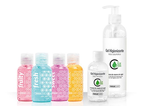 NOSAHEALTHCARE ofrece estos geles en dos formatos diferentes. Por un lado están los Geles Higienizantes Aromas, con cuatro versiones diferentes (fresa, fresco, mora y cítricos) en formato de 50 ml, para llevarlas a cualquier sitio. El otro formato es el Gel Higienizante Hidroalcohólico, con 0% de perfumes, parabenos y colorantes, apto para toda la familia y en formatos de 100 ml y 250 ml.