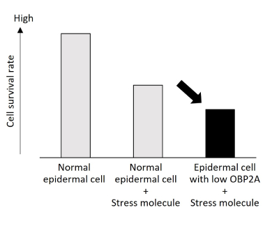 Figura 3: La adición de moléculas de estrés a células epidérmicas con bajos niveles de OBP2A reduce la tasa de supervivencia celular