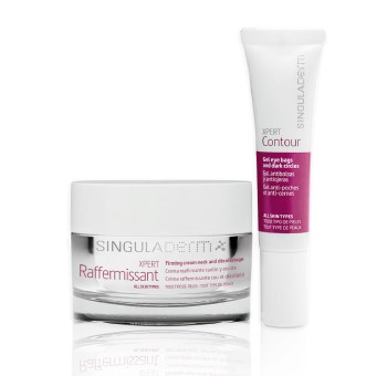 SingulaDerm, primera firma de cosmética molecular desarrollada y producida en España, cuenta con la línea XPERT, compuesta por productos antiedad específicos para las diferentes zonas del cuerpo y el rostro. Entre ellos, destacan XPERT Raffermissant, una crema indicada para la zona del cuello y el escote que mejora la elasticidad y suavidad de la piel, y XPERT Contour, un gel para el contorno de ojos que disminuye los signos de fatiga con acción descongestionante.